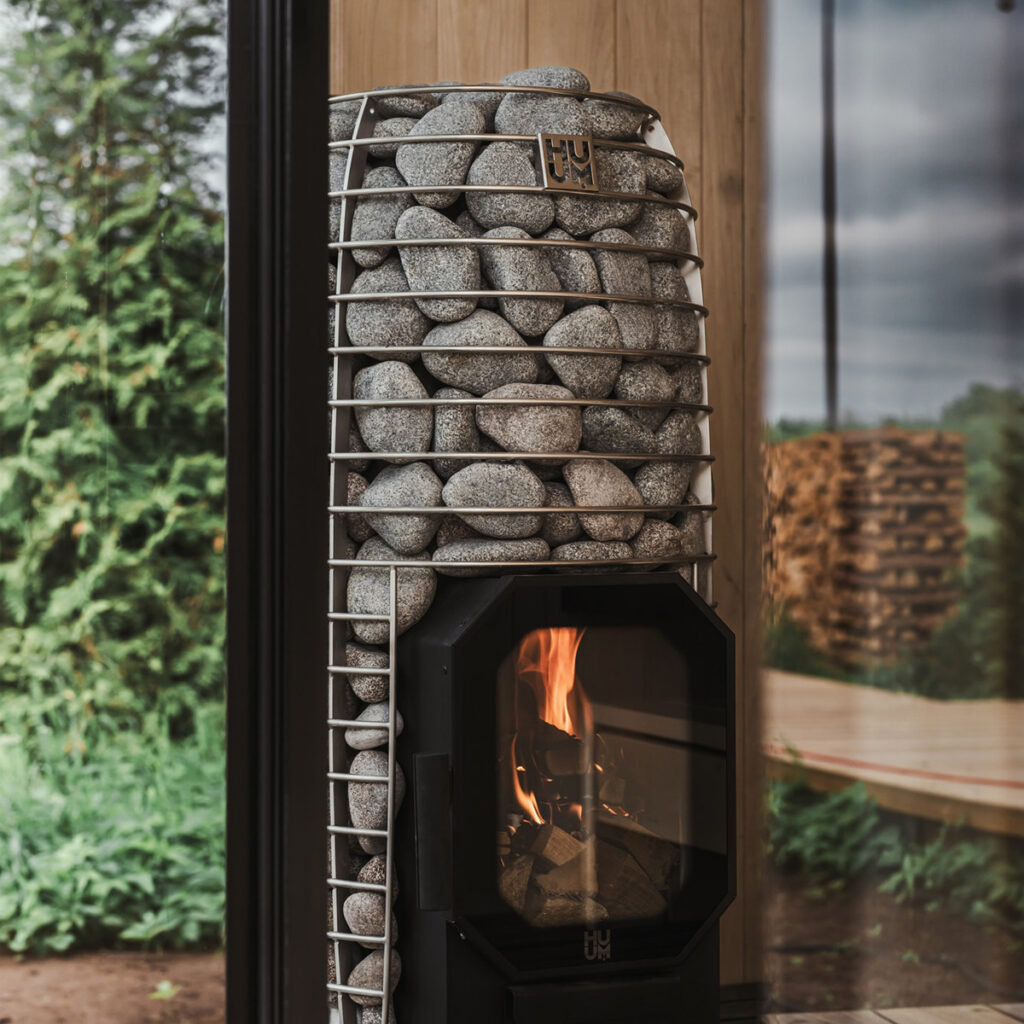 Traditsioonilise sauna fännide jaoks on Norkke Pure XL saun saadaval ka puuküttel kerisega. Selleks pakume HUUM`i uusimat puukerist Hive Flow, mis on lisaks ilusale disainile ka väga energiasäästlik.